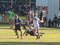 Glenn Screech evades the attempted tackle of Andrew Browning (45),