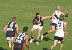Medallist Nathan Kinch (4) and Jack Lawler (22) and Shark Justin